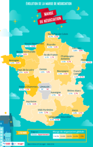 En avril, France entière, la marge de négociation s’est établie à 3.8 %, en moyenne : 3.0 % pour les appartements et 4.8 % pour les maisons.