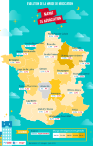 En mai, France entière, la marge de négociation s’est établie à 4.1 %, en moyenne : 3.5 % pour les appartements et 4.6 % pour les maisons.