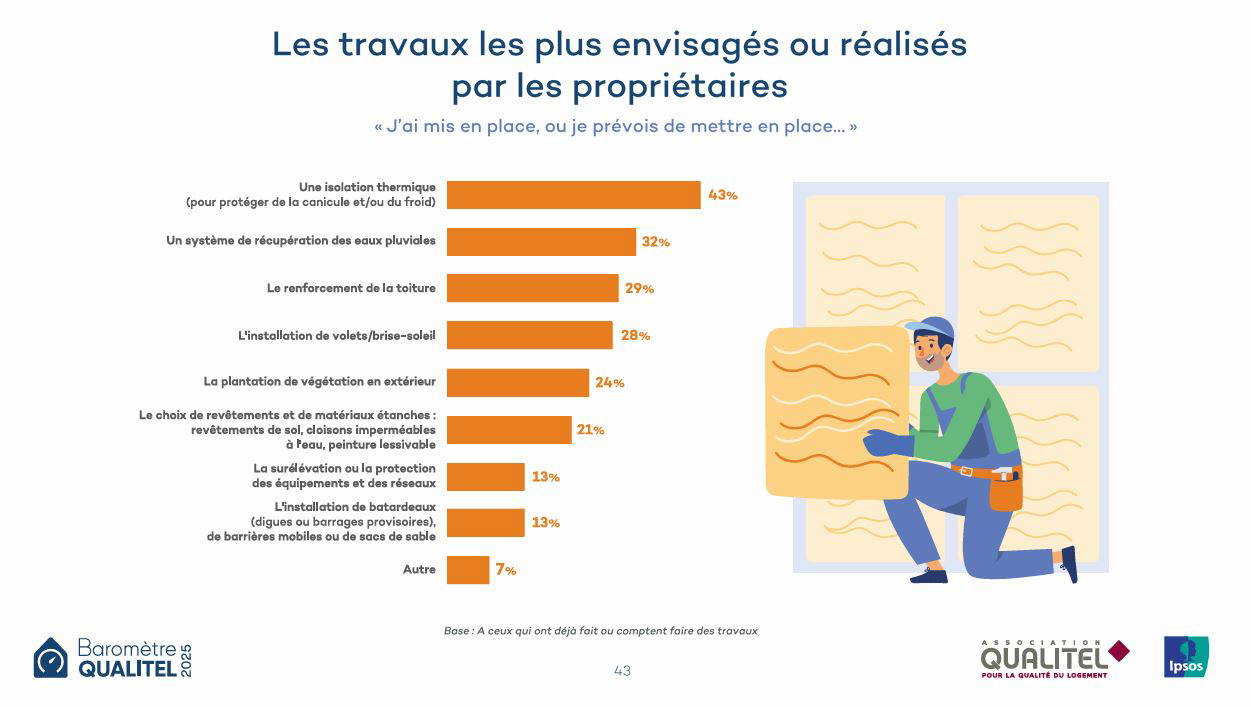 Malgré la conscience du risque, seuls 13 % des propriétaires ont entrepris des travaux pour renforcer leur logement, principalement freinés par le coût : 64 % jugent ces adaptations trop onéreuses.