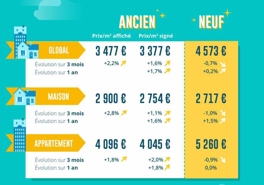La hausse des prix des logements anciens reste soutenue, en dépit de son ralentissement habituel durant les mois d’été. Car alors que souvent les prix affichés reculent en août, au cœur de la pause estivale, et parfois en septembre lorsque la reprise est hésitante, cette année les tensions sur les prix n’ont guère fléchi. Les prix des logements présentés sur le marché ont de nouveau progressé : avec + 2.2 % sur 3 mois (+ 1.8 % pour les appartements et + 2.8 % pour les maisons).