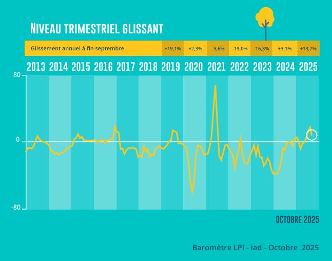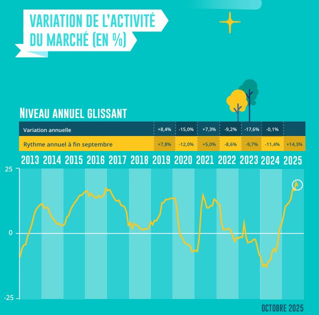Au cours du 3ème trimestre 2025, les ventes se sont accrues de 13.7 % France entière, en glissement annuel.