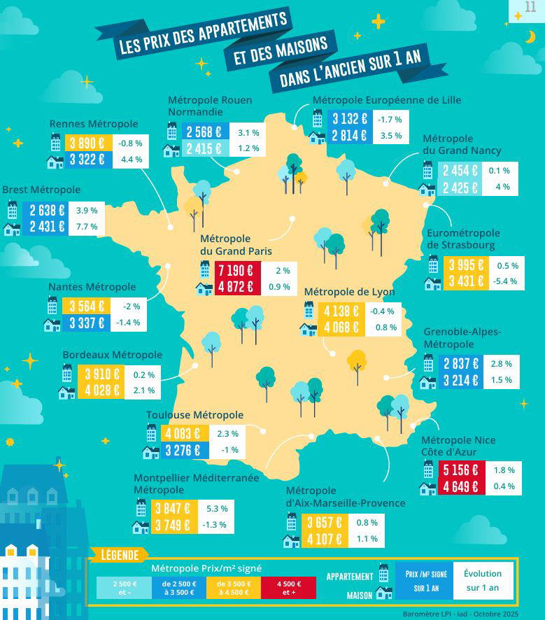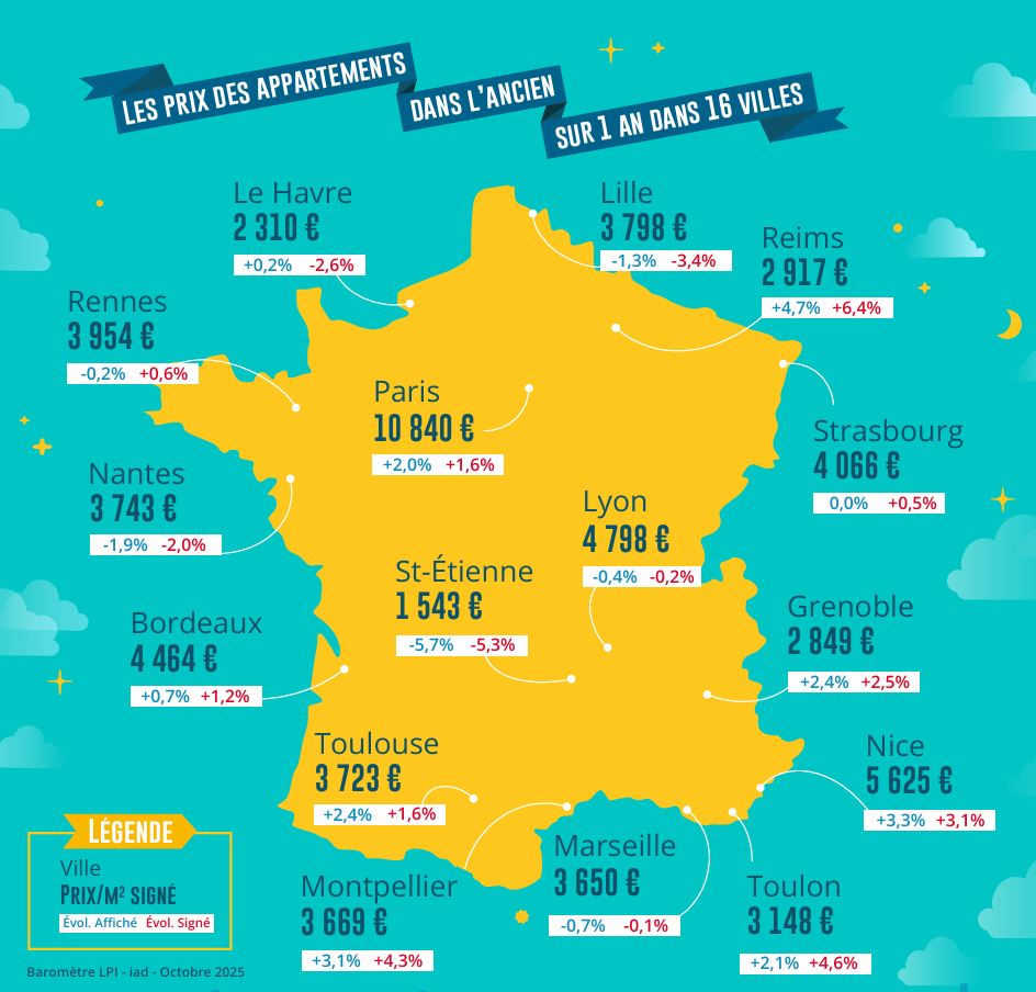 Ainsi en septembre 2025, les prix mesurés en niveau annuel glissant augmentaient de 1.7 % sur un an, sur l’ensemble du marché (+ 1.8 % pour les appartements et + 1.6 % pour les maisons).