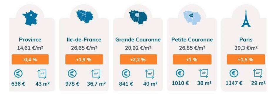 La stabilisation se vérifie aussi bien en Île-de-France (+1,9 %) qu’en région, où l’on observe même un léger recul des loyers (-0,4 %).